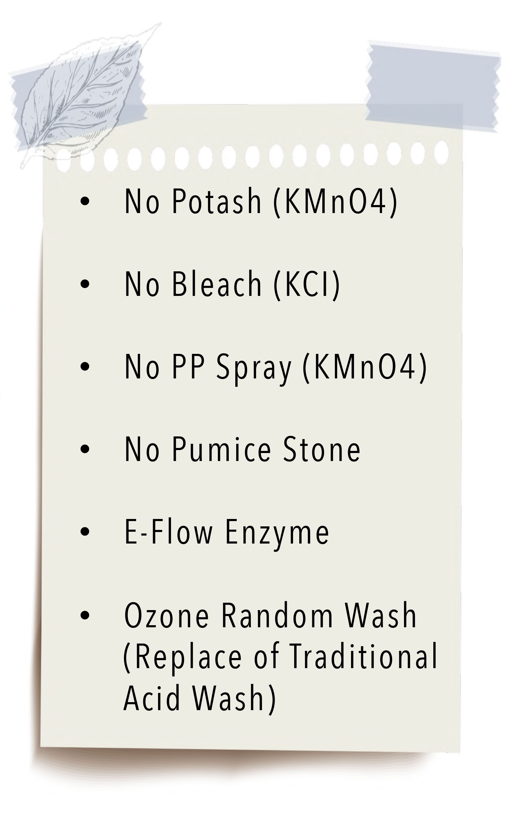 In our sustainable production we use: Green planet cotton, recycled cotton from cotton waste and old used clothes, recycled polyester from used pet bottles, bio-degradable fibres such as Tencel and modal, Organic cotton & BCI cotton, Sustainable fibre like bamboo, hemp etc.